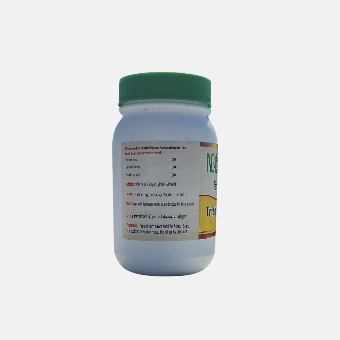 Nature Grace Triphala Churna is a time-tested Ayurvedic formulation made from three powerful herbs — Haritaki, Bibhitaki, and Amalaki. Known as one of Ayurveda’s most versatile remedies, Triphala supports digestion, detoxification, and rejuvenation of the body.